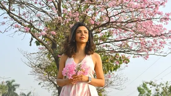 Actor Shriya Pilgaonkar recently joined HT City for a special photoshoot in Mumbai’s Ghatkopar-Vikhroli area, where she was captivated by the beauty of the Tabebuia trees, also known as pink trumpet trees. Often called ‘Mumbai’s own cherry blossoms,’ these pink flowers create a striking display along sections of the Eastern Express Highway, typically from December to April every year.
