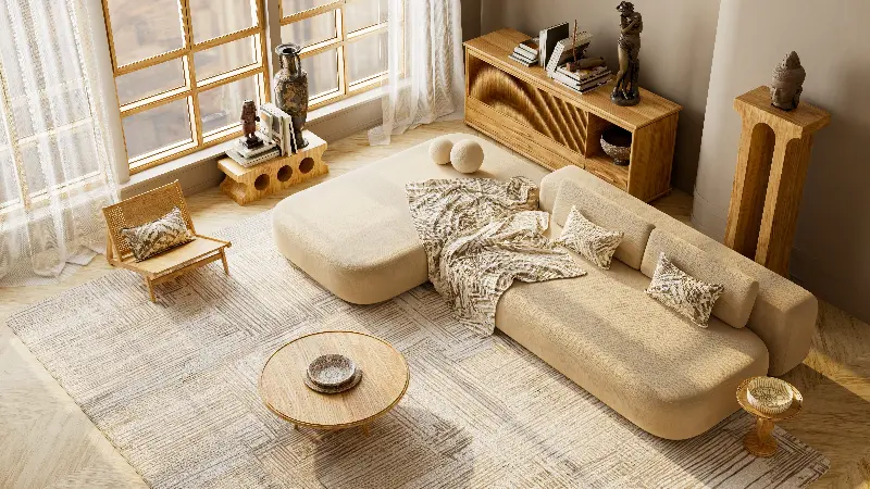 - Organic Materials: Use wooden floors, stone finishes, and natural fibers like wool or linen.