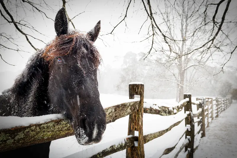 Winter feeding may need extra forage and hard feed, introduced gradually, to maintain body condition. Daily winter care includes early visits in daylight, checking legs and hooves for problems, avoiding overexercising when sweaty, and planning backup care in emergencies.