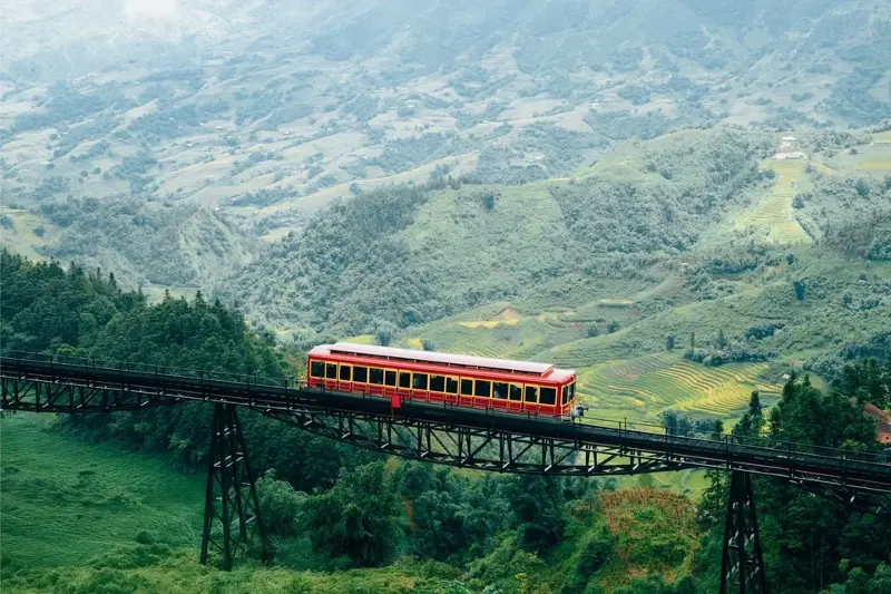 The train passes through the Muong Hoa Valley, Sa Pa, Lao Cai province, September 2025.