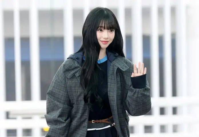 Karina appeared in a gray checkered jacket paired with a knee length pleated skirt, balancing classic tailoring with a modern edge. Her long, softly waved hair and minimal accessories allowed her sharp features and flawless complexion to take center stage. Unsurprisingly, photos from the airport quickly went viral, with fans describing her visuals as “AI-level” and “impossibly perfect.”